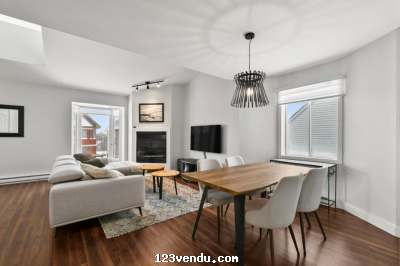 Joli et impeccable condo de 2 chambres au dernier ?tage d'une petite copropri?t? de 8 unit?s. Plafond cath?dral au salon, tr?s lumineux et au go?t du jour, il offre une place de stationnement ext?rieur et un rangement. Secteur tranquille a quelques pas d'un parc et pr?s du train de banlieue, autoroutes, commodit?s & plus. Un vrai cl? en main!. Jean Fran?ois Girard 514-926-7353 ? Courtier Immobilier chez Royal LePage Patrimoine, Agence immobili?re